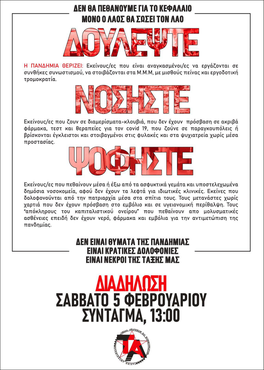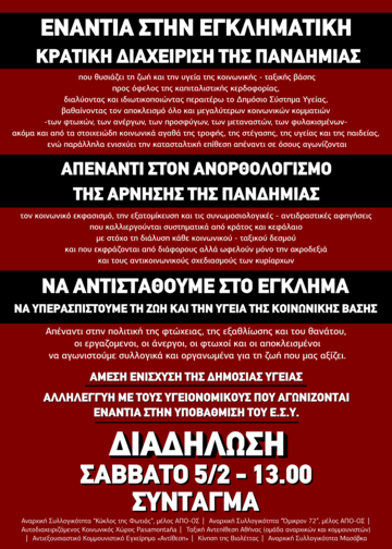 ΔΙΑΔΗΛΩΣΗ Για την υγεία και την αξιοπρέπεια του λαού - ενάντια στην εγκληματική κρατική διαχείριση της πανδημίας