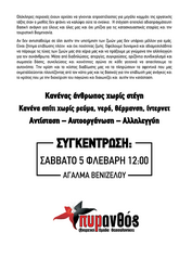 ΣΥΓΚΕΝΤΡΩΣΗ ΣΑΒΒΑΤΟ 5 ΦΛΕΒΑΡΗ, 12:00, ΑΓΑΛΜΑ ΒΕΝΙΖΕΛΟΥ