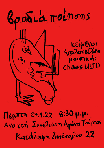 Την ερχόμενη Πέμπτη στο Κοινωνικό Κέντρο Αγώνα Τούμπας, ακούμε ποιήματα από τον Άγγελο & την Ελένη, με μουσική υπόκρουση από τους Chaos ULTD!