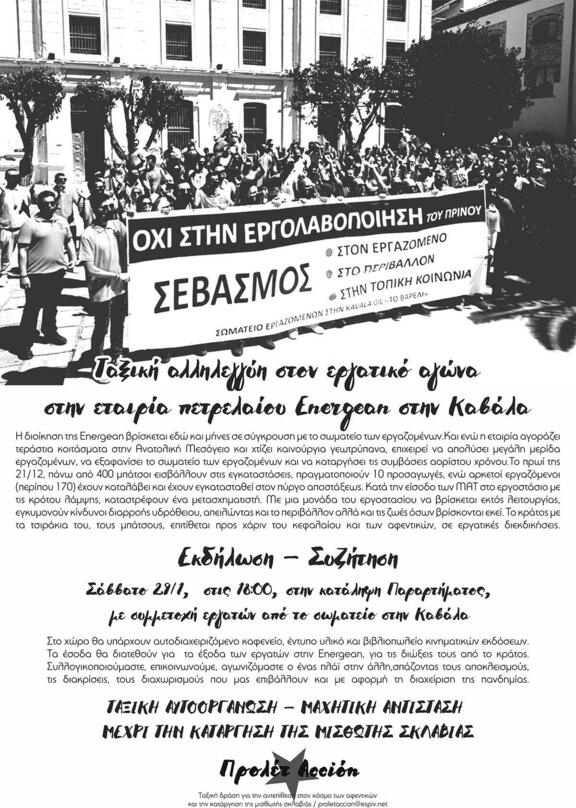 Εκδήλωση αλληλεγγύης στον αγώνα των εργατών στην Energean στην Καβάλα