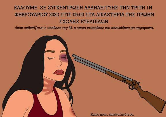 Συγκέντρωση αλληλεγγύης για την εκδίκαση της υπόθεσης της Μ. που χτυπήθηκε και απειλήθηκε με καραμπίνα