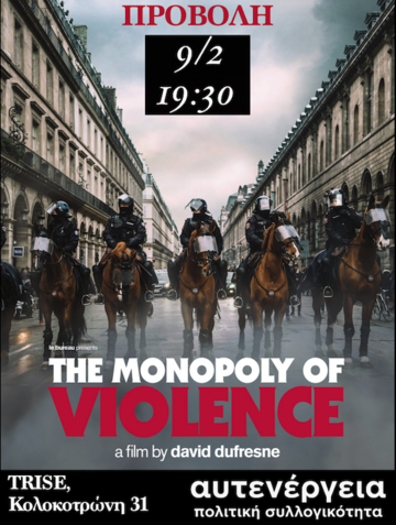 Η πολιτική συλλογικότητα Αυτενέργεια καλεί όλες και όλους στην ΠΡΟΒΟΛΗ του ντοκιμαντέρ «Το μονοπώλιο της βίας» (The monopoly of violence / Un pays qui se tient sage)