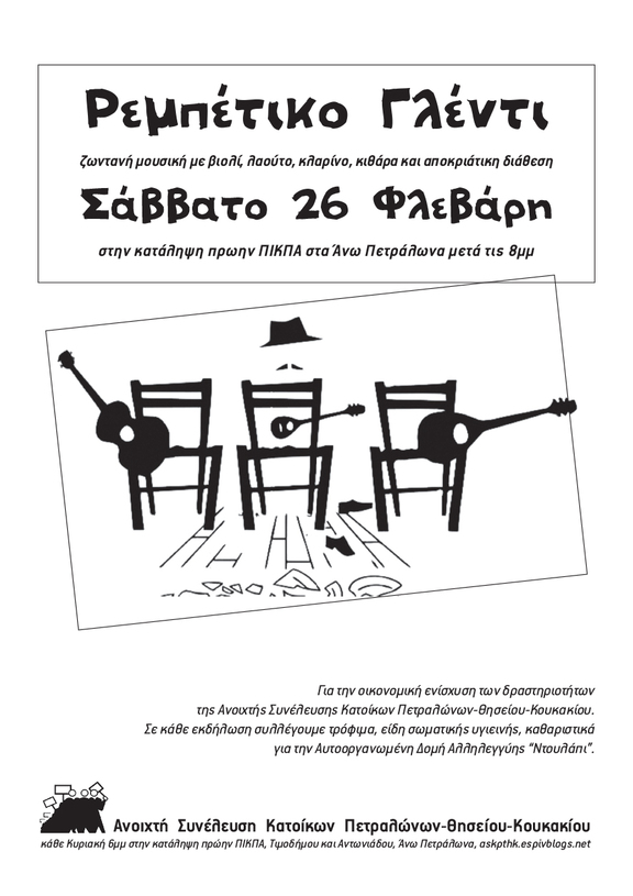 Για την οικονομική ενίσχυση των δραστηριοτήτων της Ανοιχτής Συνέλευσης Κατοίκων Πετραλώνων-Θησείου-Κουκακίου.