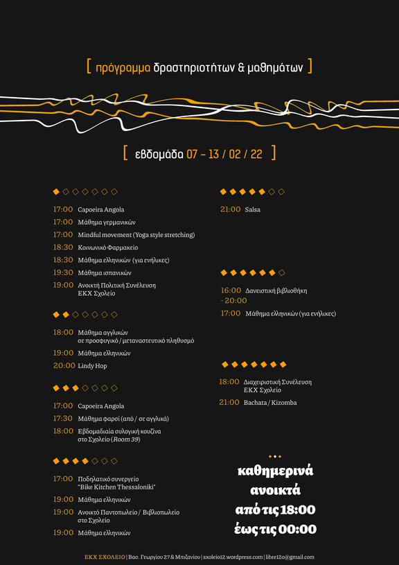 Καθημερινά στον ΕΚΧ Σχολείο από τις 18:00 έως περίπου τα μεσάνυχτα.