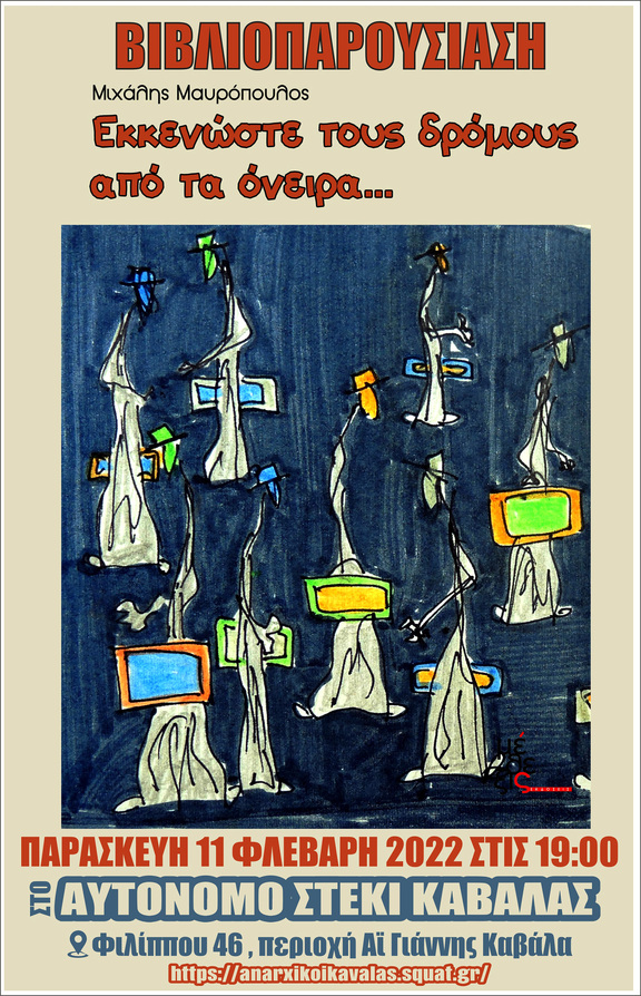 Εκκενώστε τους δρόμους από τα όνειρα - Συγγραφέας: Μιχάλης Μαυρόπουλος - Βιβλιοπαρουσίαση στο Αυτόνομο Στέκι Καβάλας Φιλίππου 46 , Παρασκευη 11/2/2022 στις 19:00