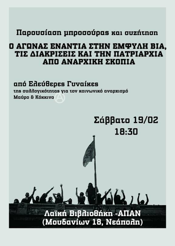 Παρουσίαση της μπροσούρας "Ο αγώνας ενάντια στην έμφυλη βία, τις διακρίσεις και την πατριαρχία από αναρχική σκοπιά" & συζήτηση