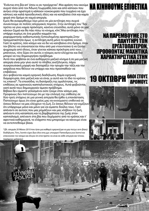 ΣΤΙΣ 19 ΟΚΤΩΒΡΗ ΝΑ ΔΩΣΟΥΜΕ ΜΙΑ ΒΙΑΙΗ ΑΠΑΝΤΗΣΗ Σ' ΑΥΤΟΥΣ ΠΟΥ ΘΕΛΟΥΝ ΝΑ ΖΗΣΟΥΜΕ ΟΛΟΚΛΗΡΗ ΤΗ ΖΩΗ ΜΑΣ ΣΑΝ ΣΚΛΑΒΟΙ, ΓΙΑ ΝΑ ΤΡΩΝΕ ΚΑΠΟΙΟΙ ΜΕ ΧΡΥΣΑ ΚΟΥΤΑΛΙΑ, ΓΙΑ ΝΑ ΕΠΙΒΙΩΣΕΙ ΤΟ ΣΑΠΙΟ ΣΥΣΤΗΜΑ ΤΟΥΣ.