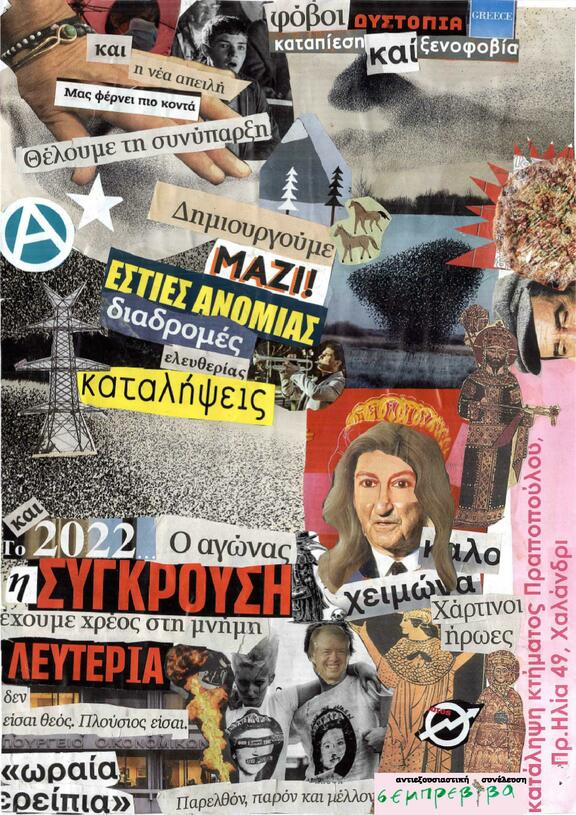 Εδώ ήρθαμε για να περάσουμε ωραία. Ήρθαμε και να συμφωνήσουμε και να συγκρουστούμε με πάθος. Εδώ δίνουμε χώρο και χρόνο για πολιτική ζύμωση. Συναντιόμαστε φέρνοντας και νέες ιδέες, πρακτικές και αναγνώσεις.― Ποιος είπε ότι στις καταλήψεις δεν υπάρχουν προκαταλήψεις;― Ποιος είπε ότι στις καταλήψεις δεν αμφισβητούνται και στη πράξη οι προκαταλήψεις; Στο κοινό αυτό τόπο ερχόμενες αντιμέτωποι με το εμείς, κοιτάμε στα μάτια το εγώ και γινόμαστε ζμπαράλια.
