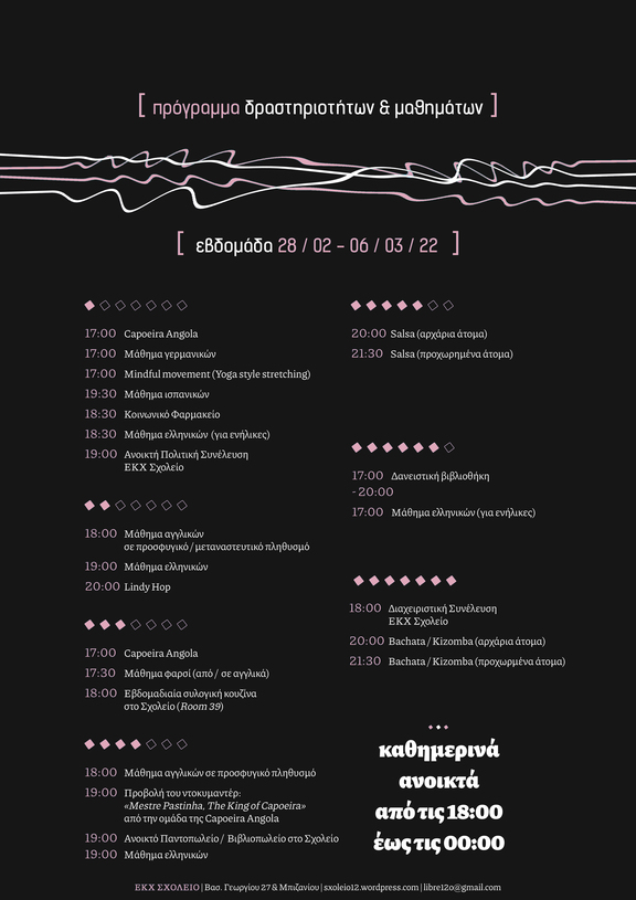 Εβδομαδιαίο πρόγραμμα στον ΕΚΧ Σχολείο για το διάστημα 28/02 - 06/03/22.