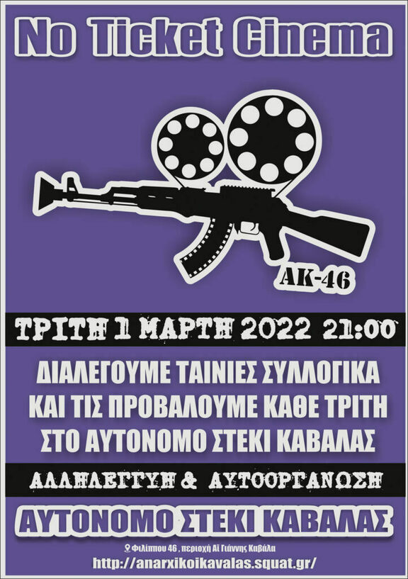ΑΚ46 , Σήμερα 1 Μάρτη στις 21:00 διαλέγουμε ταινίες , συλλογικά , στο Αυτόνομο Στέκι Καβάλας