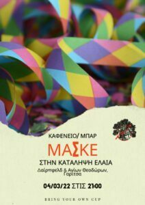 Φανερώστε λοιπόν την μάσκα που κρύβετε κάτω από την μάσκα που φοράτε και ελάτε να πάρουμε μια δόση χαράς μέσα στον καθημερινό αγώνα που κάνουμε απέναντι σε όλο αυτό το σάπιο σύστημα. Να διασκεδάσουμε με τους δικούς μας όρους, στους δικούς μας χώρους.
