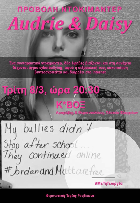 Τρίτη 8 Μάρτη - Προβολή ντοκιμαντέρ "Audrie and Daisy"