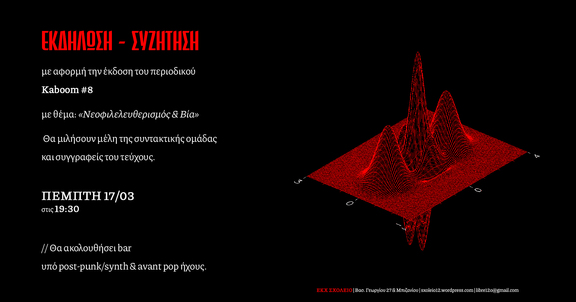 Εκδήλωση/συζήτηση με αφορμή την έκδοση του 8ου τεύχους του περιοδικού Kaboom: Νεοφιλελευθερισμός και βία.