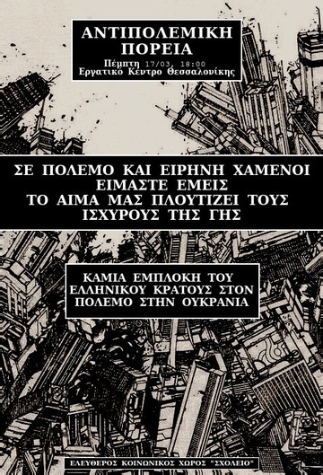 ΑΝΤΙΠΟΛΕΜΙΚΗ ΔΙΑΔΗΛΩΣΗ ΠΕΜΠΤΗ 17/3 ΣΤΙΣ 18:00 ΣΤΟ ΕΡΓΑΤΙΚΟ ΚΕΝΤΡΟ ΘΕΣΣΑΛΟΝΙΚΗΣ