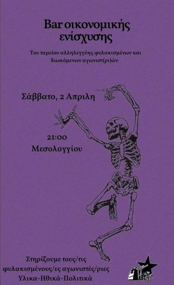 Μπαρ οικονομικής ενίσχυσης του Ταμείου Αλληλεγγύης Φυλακισμένων και Διωκόμενων αγωνιστών-στριών