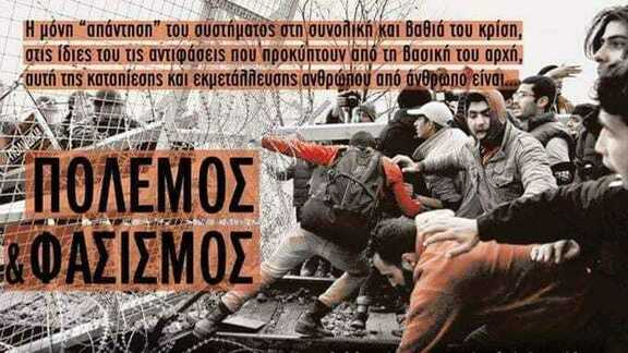 Γι' αυτό λοιπόν οφείλουμε να σπάσουμε τους διαχωρισμούς που μας επιβάλλουν σε ντόπιες και ξένους. Να σταθούμε από κοινού απέναντι στην αντιμεταναστευτική πολιτική του Ελληνικού κράτους και της ΕΕ, αλλά και στο ίδιο το σύστημα εκμετάλλευσης που οδηγεί τους ανθρώπους στην εξαθλίωση και τον ξεριζωμό. Να δημιουργήσουμε κοινότητες αγώνα ενάντια στον πόλεμο, τον εθνικισμό, το ρατσισμό, τα σύνορα και φυσικά ενάντια σε εκείνους που καλλιεργούν και έχουν όφελος από όλα τα παραπάνω. Να οργανωθούμε και να πετύχουμε τις ταξικές νίκες που τόσο έχουμε ανάγκη για την καθημερινή μας επιβίωση, αλλά και για να ξαναπιστέψουμε πως όλες μαζί μπορούμε ως προλετάριοι να νικήσουμε και να δομήσουμε τη νέα κοινωνία χωρίς έθνη και τάξεις, χωρίς στρατούς, χωρίς εκμετάλλευση ανθρώπου από άνθρωπο και λεηλασία της φύσης. Τον κόσμο που όλα θα είναι για όλους.