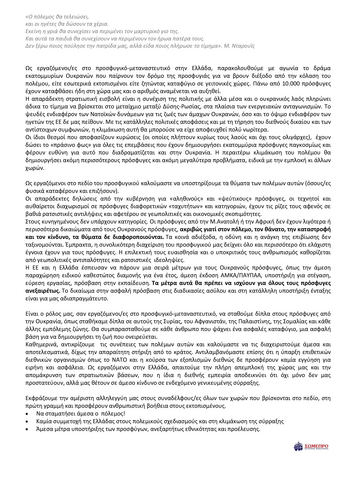Κόντρα στους πλαστούς διαχωρισμούς μεταξύ "αληθινών" και "ψεύτικων" προσφύγων, κόντρα στην εργαλειοποίηση των θυμάτων, ενάντια στον διαχωρισμό προσφύγων δύο ταχυτήτων και τον επιλεκτικό ανθρωπισμό, οφείλουμε να δηλώσουμε εμπράκτως την αντίθεσή μας και να διεκδικήσουμε μια διαφορετική διαχείριση στο προσφυγικό/μεταναστευτικό.