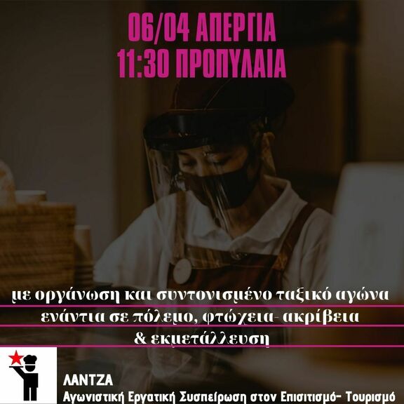 Την Τετάρτη 6 Απρίλη απεργούμε. Τη στιγμή που οι ανάγκες μας όλο και μεγαλώνουν μέσω των συνεχών ανατιμήσεων σε όλες τις πτυχές της ζωής μας, οι μισθοί μειώνονται, οι απεργίες ποινικοποιούνται, οι αγώνες καταστέλλονται.
