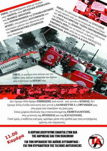 6 ΑΠΡΙΛΗ ΑΠΕΡΓΟΥΜΕ ΕΝΑΝΤΙΑ ΣΤΗΝ ΒΙΑ ΤΗΣ ΑΚΡΙΒΕΙΑΣ ΚΑΙ ΤΩΝ ΠΟΛΕΜΩΝ!