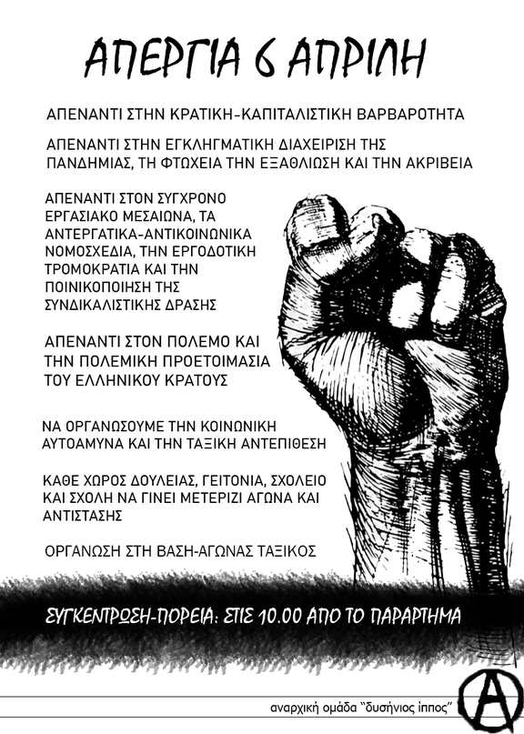 Στηρίζουμε τα αναρχικά καλέσματα στην απεργιακή κινητοποίηση ενάντια στον πόλεμο, το αυξημένο κόστος ζωής την Τετάρτη 6 Απρίλη στις 10:00 π.μ. από την Κατάληψη Παραρτήματος και στις 10:30 στην πλατεία Όλγας.