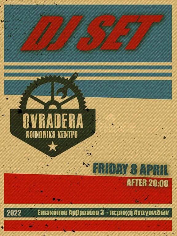 Παρασκευή 8/4, μετά τις 20:00 στο Κοινωνικό Κέντρο Ovradera (Επισκόπου Αμβροσίου 3 - περιοχή Αντιγονιδών)