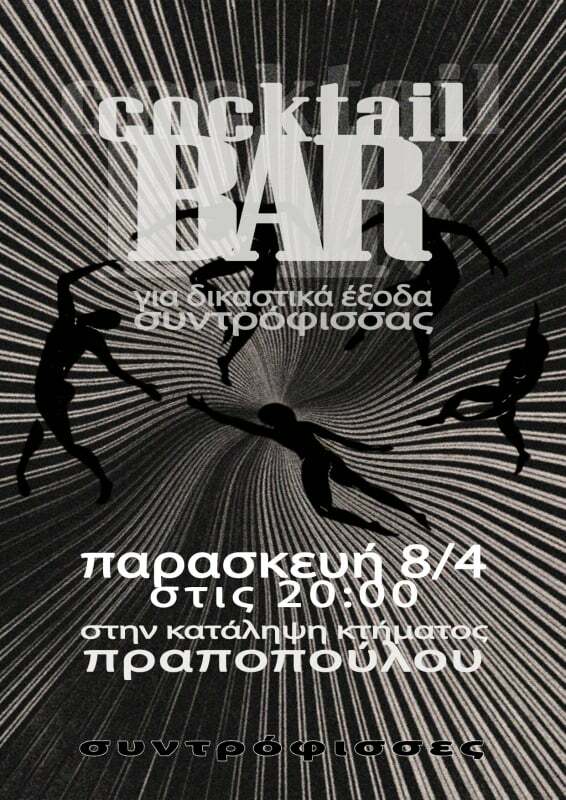 Cocktail Bar οικονομικής ενίσχυσης στο κτήμα Πραποπουλου για την κάλυψη δικαστικών εξόδων συντρόφισσας.