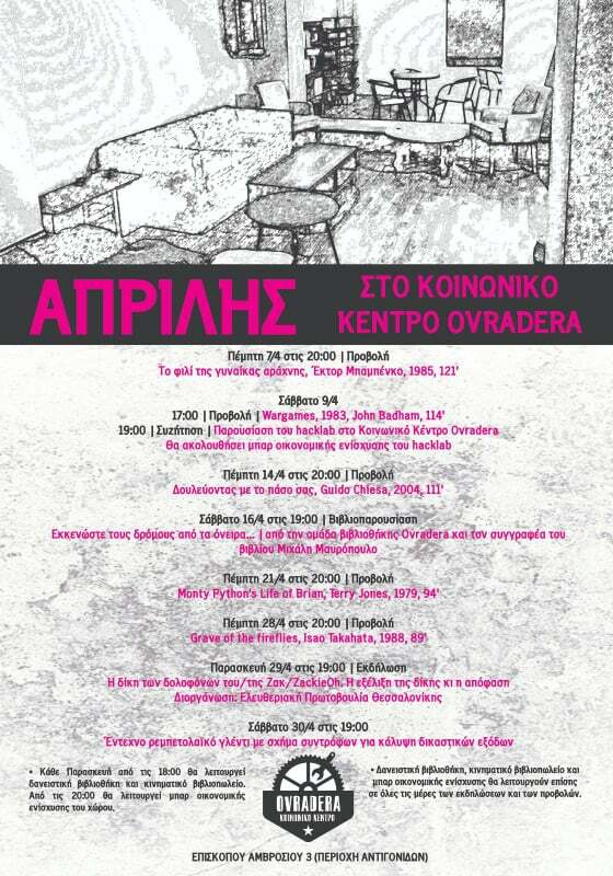Προβολή ταινίας στο Κοινωνικό Κέντρο Ovradera (Επισκόπου Αμβροσίου 3 - περιοχή Αντιγονιδών)