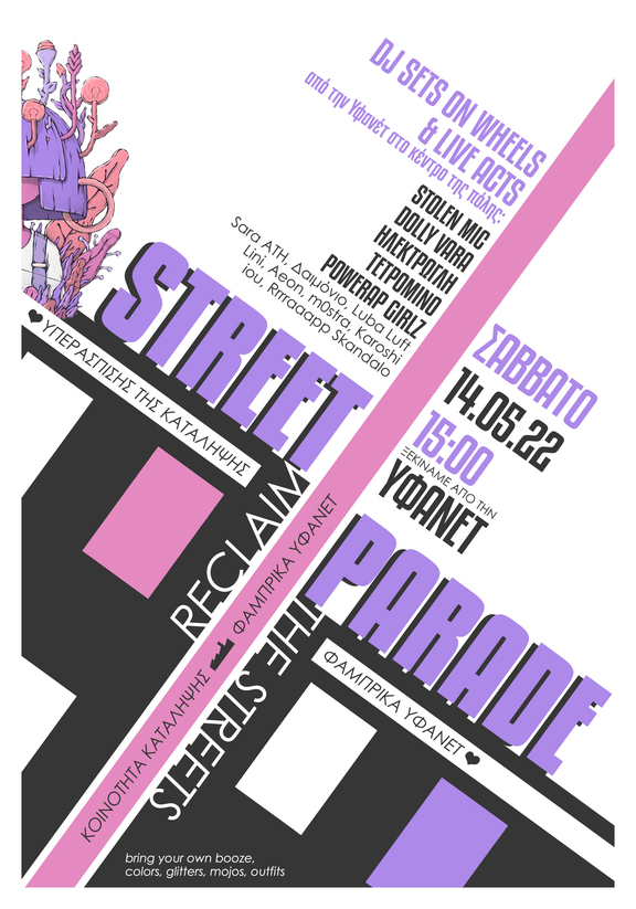[ΕΝΗΜΕΡΩΣΗ] STREET PARADE υπεράσπισης της Υφανέτ live acts + dj sets on wheels