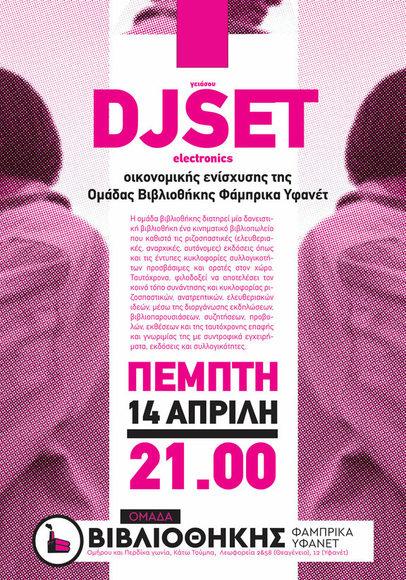 DJ Set οικονομικής ενίσχυσης της ομάδας βιβλιοθήκης, βιβλιοπωλείου και κινηματικού αρχείου στη Φάμπρικα Υφανέτ.