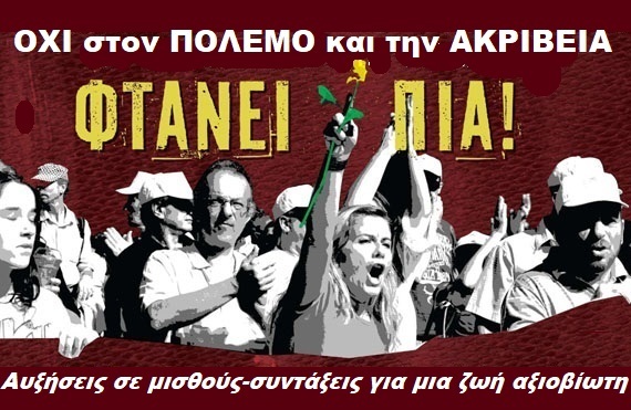Διαδηλώνουμε ενάντια στον ΠΟΛΕΜΟ και την ΑΚΡΙΒΕΙΑ, για ΑΥΞΗΣΕΙΣ σε ΜΙΣΘΟΥΣ-ΣΥΝΤΑΞΕΙΣ