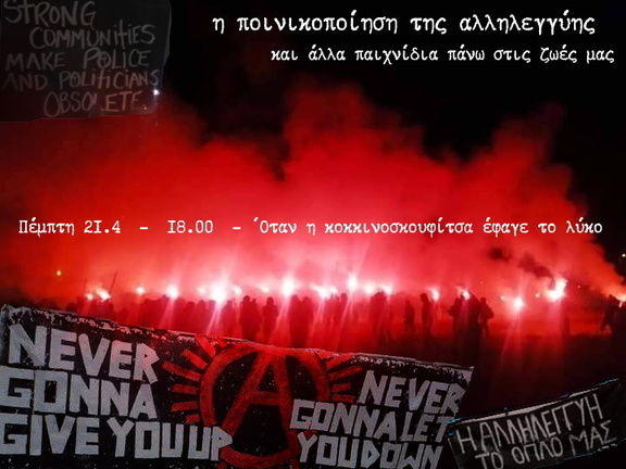 θεματική εκπομπή για την ποινικοποίηση της αλληλεγγύης, των ανθρώπινων σχέσεων και άλλα τέτχια παιχνίδια που παίζει το κράτος επάνω στις ζωές μας
