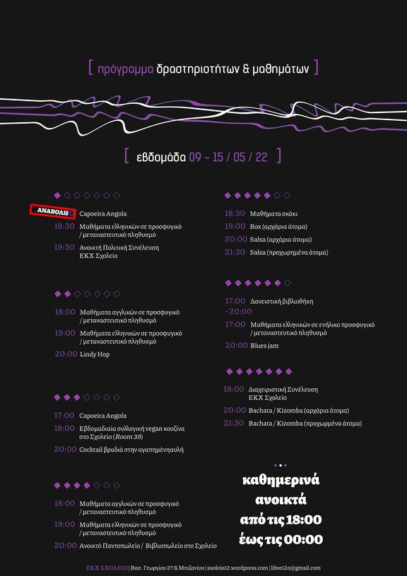 - Αναβολή του μαθήματος Capoeira Angola τη Δευτέρα 09/05