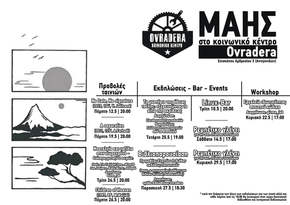 Πέμπτη 12/5, 20:00 στο Κοινωνικό Κέντρο Ovradera (Επισκόπου Αμβροσίου 3 - περιοχή Αντιγονιδών)