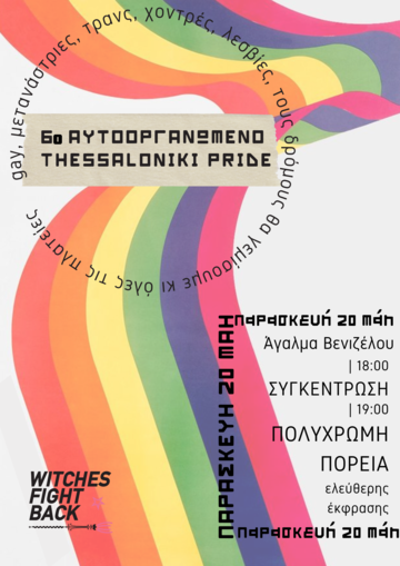 Αύριο, 20 Μαΐου στις 18:00 στο Άγαλμα Βενιζέλου, το μαγισσομπλοκ μας θα συμμετέχει στο 6ο Αυτο-οργανωμένο Thessaloniki Pride! ![]()