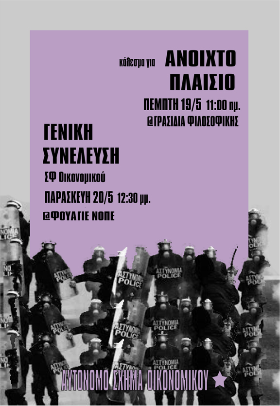 Κάλεσμα σε διαδικασία Ανοιχτού Πλαισίου την Πέμπτη 19/5 ωρα 11:00 στα γρασίδια της Φιλοσοφικής για τη ΓΣ του Οικονομικού ΑΠΘ.
