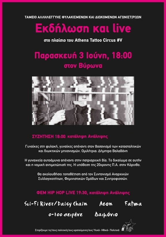 Εκδήλωση & Live του Ταμείου Αλληλεγγύης Φυλακισμένων και Διωκόμενων αγωνιστών-στριών στα πλαίσια του Athens Tattoo Circus