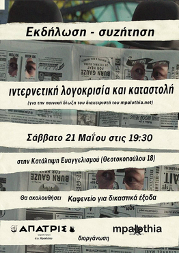 Μια συζήτηση - εκδήλωση από την Σ.Ο. Ηρακλείου της Άπατρις και τον διαχειριστή της mpalothia.net για την δίωξη του για ανάρτηση στην ιστοσελίδα.