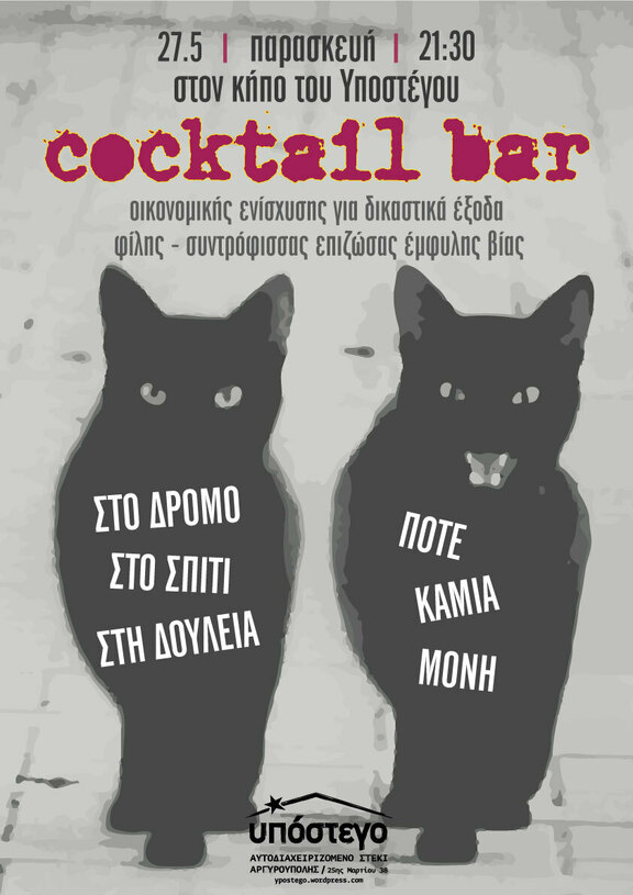 Cocktail bar οικονομικής ενίσχυσης για δικαστικά έξοδα φίλης - συντρόφισσας, επιζώσας έμφυλης βίας