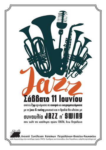 Σάββατο 11 Ιουνίου από τις 7μμ ερχόμαστε σε επαφή και πειραματιζόμαστε με τη jazz & swing μουσική και η βραδιά θα κλείσει με