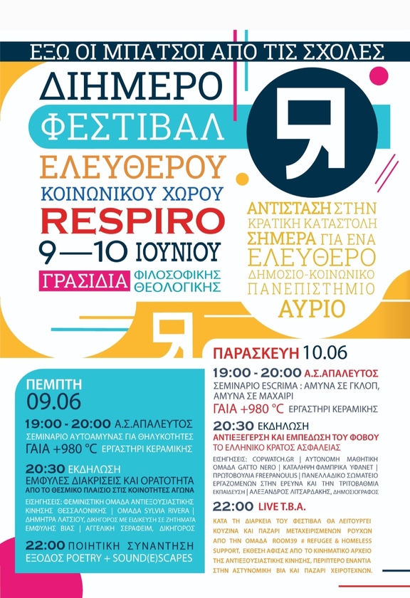 !Σε περίπτωση βροχής όλες οι εκδηλώσεις του φεστιβάλ θα μεταφερθούν στον χώρο ανάμεσα από Πρυτανεία και Νομική!