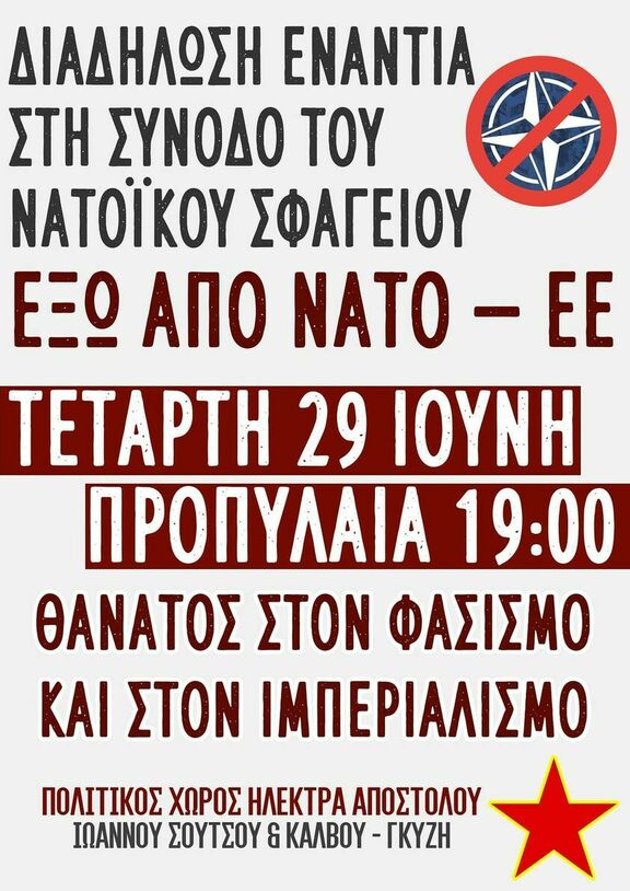 [Αθήνα] Κάλεσμα στη διαδήλωση ενάντια στη σύνοδο του ΝΑΤΟ | Τετ. 29/6