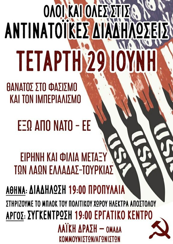 Πανελλαδική μέρα αντιπολεμικής δράσης, ενάντια στη σύνοδο του ΝΑΤΟ, 29 Ιουνίου
