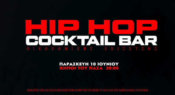 Το Σωματείο Βάσης Εργαζομένων στο χώρο της Ψυχικής Υγείας και της Κοινωνικής Πρόνοιας , διοργανώνει Hip Hop Cocktail Bar την Παρασκευή 10 Ιούνη στους Κήπους του Πασά.