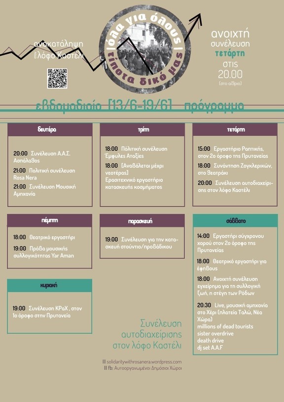 20:00 - 23:00 Συνέλευση αυτοδιαχείρισης στον λόφο Καστέλι