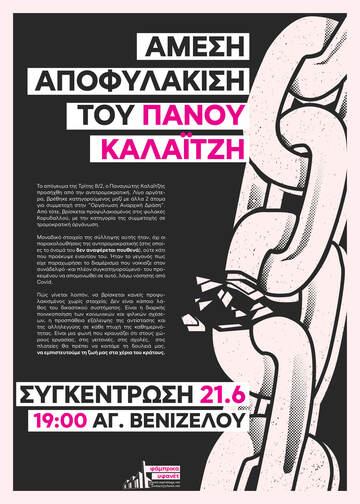 Άμεση αποφυλάκιση του Πάνου Καλαϊτζή. Συγκέντρωση - Μικροφωνική