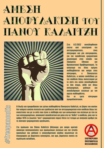 ΑΜΕΣΗ ΑΠΟΦΥΛΑΚΙΣΗ ΤΟΥ ΠΑΝΟΥ ΚΑΛΑΙΤΖΗ