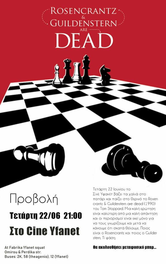 Τετάρτη 22 Ιουνίου στις 9μμ προβολή της ταινίας "Rosencrantz & Guildenstern Are Dead (1990) από το Cine Yfanet