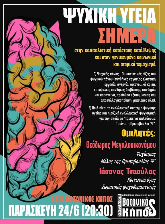 1) Ψυχικός πόνος... Οι κοινωνικές ρίζες του ψυχικού πόνου (συνθήκες εργασίας ελαστική εργασία, ανεργία, οικονομική κρίση, επισφαλείς συνθήκες διαβίωσης, πανδημία και καραντίνα, προϊούσα εξατομίκευση και αποσυλλογικοποίηση, ρατσισμός κλπ).