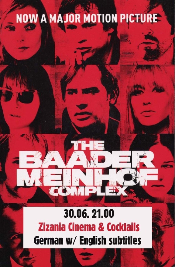 21:00 Open rooftop cinema and cocktail bar for the financial support of the squat. The Baader Meinhof Complex (2008) 2h30m German with English subtitles