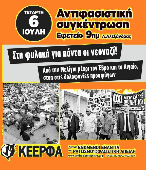 Αντιφασιστική συγκέντρωση, Τετάρτη 6 Ιούλη, Εφετείο 9πμ, Λ.Αλεξάνδρας